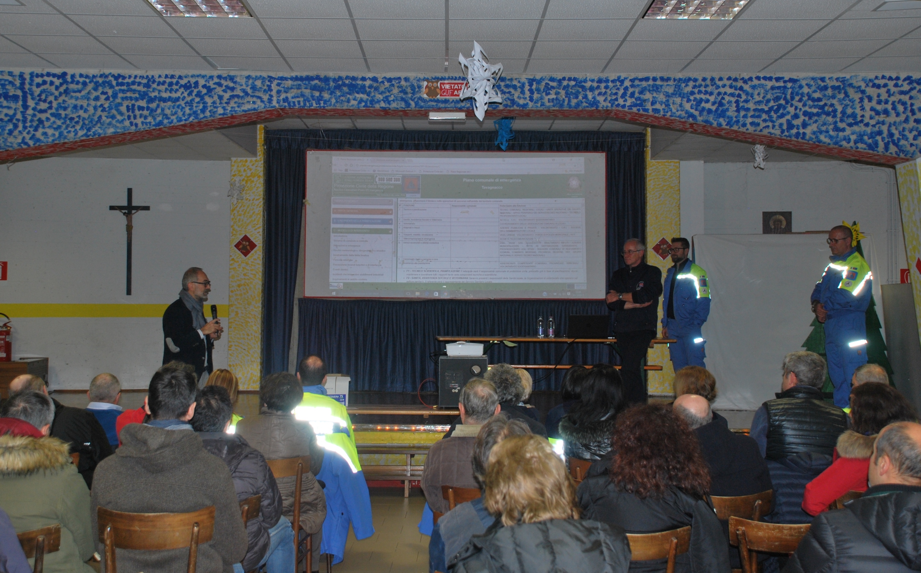 Alla presenza di un discreto numero di abitanti, e di alcuni volontari del Gruppo Comunale di protezione Civile locale,  l’Assessore Lirutti ha illustrato i passi fatti da amministrazione, uffici comunale e dai volontari di Protezione Civile per giungere alla redazione del Piano.