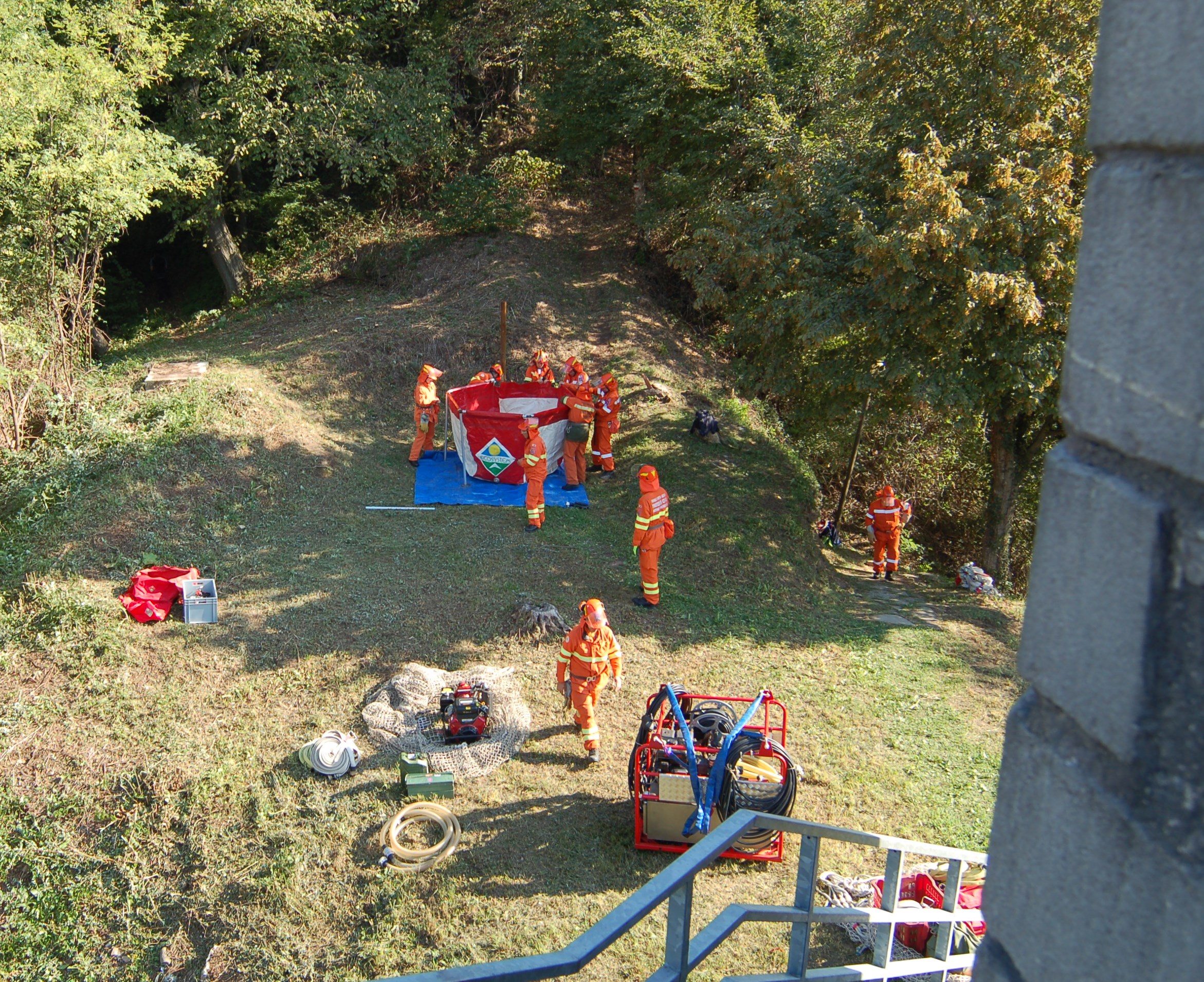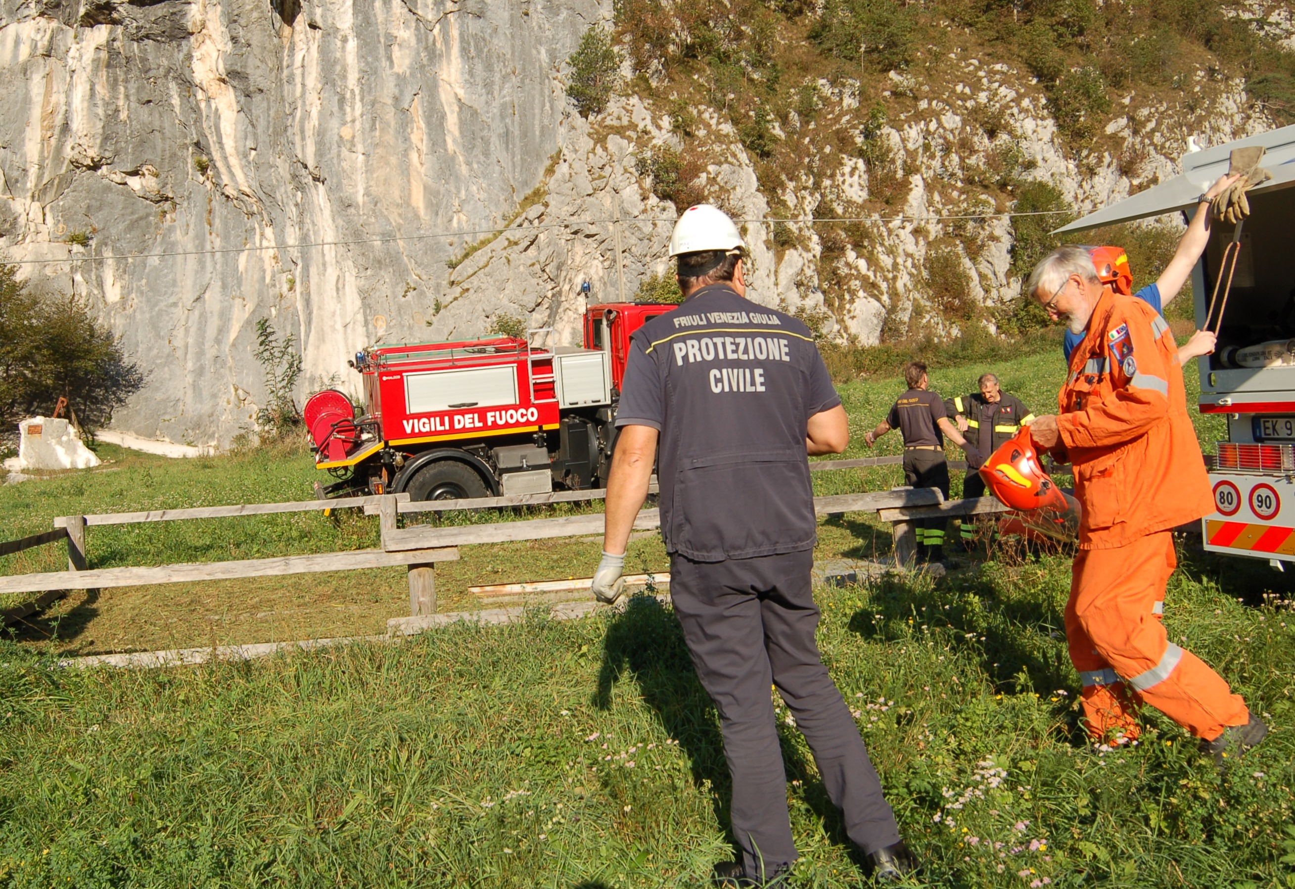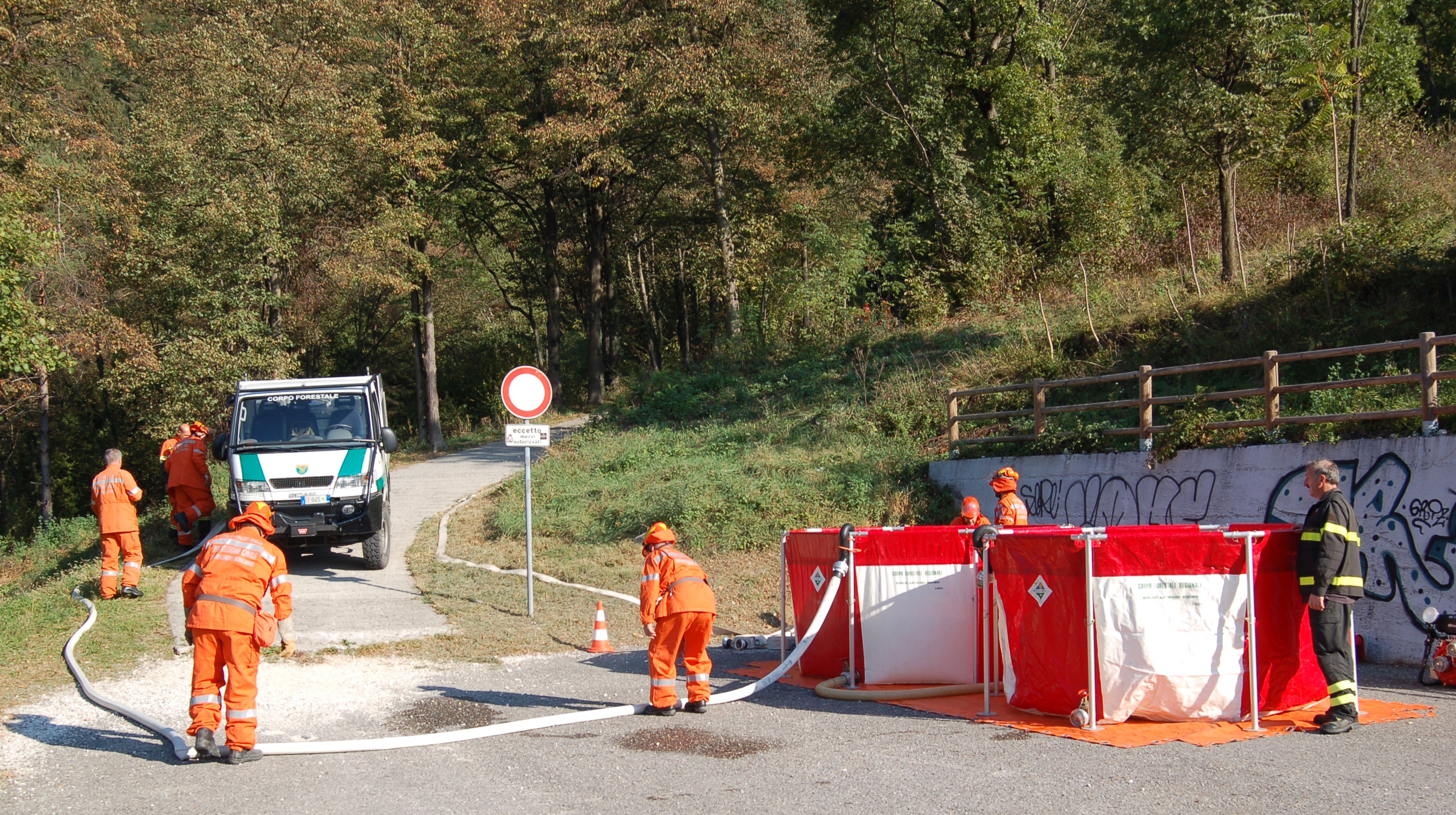 Le attività pratiche hanno visto il dispiegamento, presso il settore rifornimento idrico, di vasconi mobili per l’approvvigionamento idrico presso il piazzale di Prà Castello con il rifornimento da parte delle autobotti specifiche per l’antincendio boschivo dei Vigili del Fuoco (Unimog U20), del Corpo Forestale Regionale (un Iveco 80 e uno Scam 55) e della Protezione Civile del Gruppo Comunale di Cividale (un MB Atego) che hanno portato acqua, garantendo un rifornimento continuo senza lasciare la linea senz’acqua, facendo spola tra Prà Castello e il deposito interrato situato presso la Palestra di Roccia di Betania.