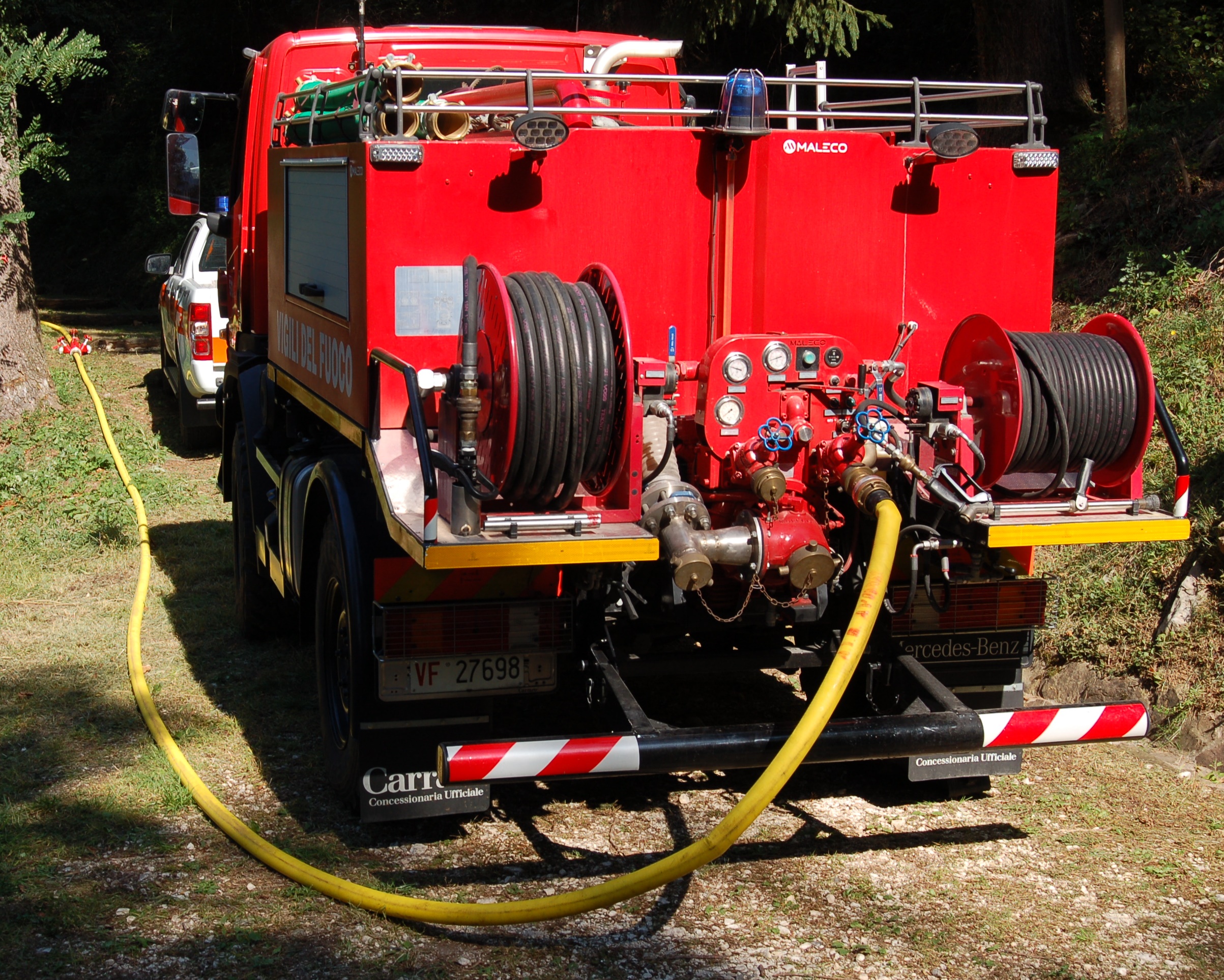 La manovra, nel frattempo, proseguiva lungo il sentiero che porta a Torre Picotta, con l’allestimento di ulteriori due vasche e il dispiegamento di una linea ad alta pressione di 520 metri per un dislivello di 92 metri, a cui si aggiunge una linea a media pressioni di altri 100 metri di lunghezza e per un totale di 680 metri di linea (31 manichette antincendio).