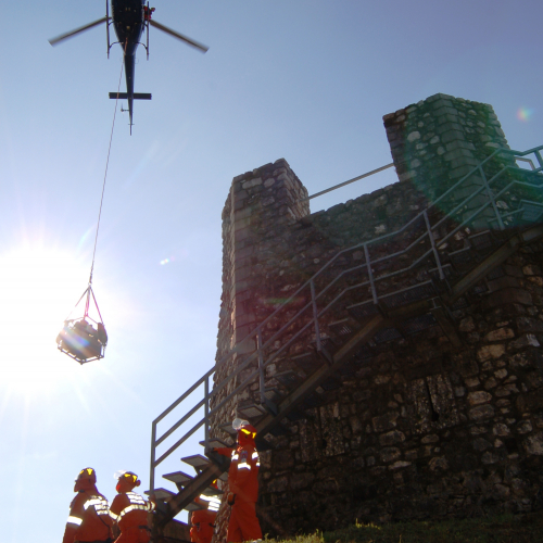 Il settore elicooperazione ha provveduto, con il coinvolgimento della Sala Operativa Regionale di Palmanova, alla preparazione dei materiali (motopompe, vasche mobili, modulo antincendio e manichette) ed al successivo trasporto delle attrezzature con elicottero regionale presso Torre Picotta.