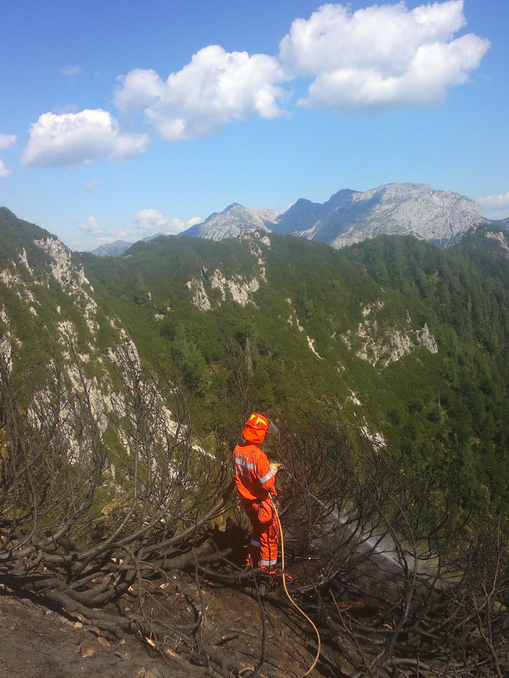 Volontari del Gruppo Comunale di Protezione Civile di Cividale del Friuli (UD) impegnati nelle attività AIB sugli incendi del Monte Jovet (Chiusaforte) e Monte Le Piche (Pontebba)